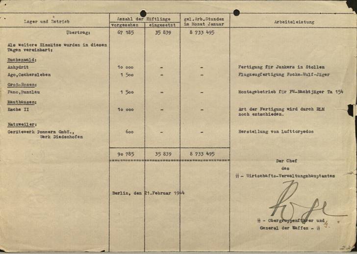 Wirtschafts- Verwaltungshauptamt „Pohl“ zum Einsatz von KZ Häftlinge für die